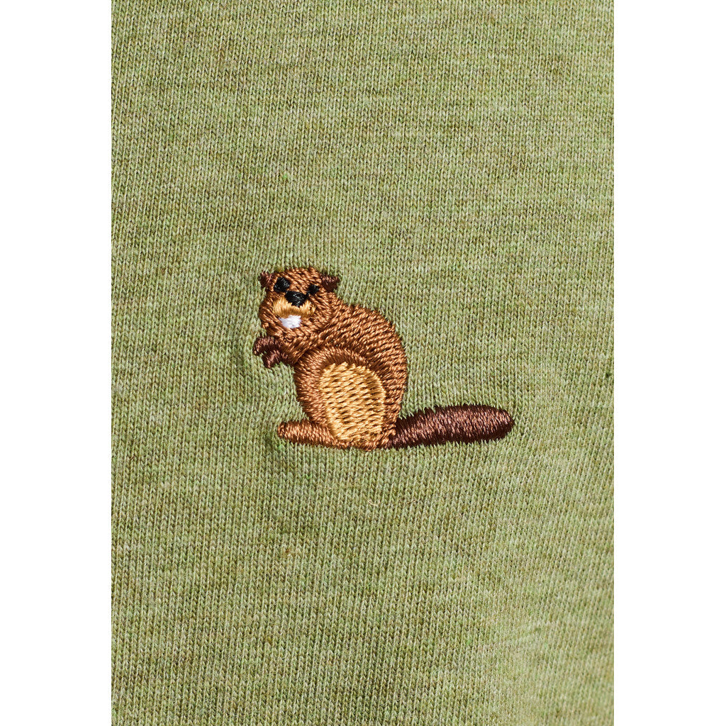 Loose-fitted t-shirt with a round neck and short sleeves, made in a mélange organic cotton-jersey, with a weight of 200 GSM. The t-shirt features a small fun, colorful embroidery on the chest, a rib collar and the hem is made with a twin needle stitch. The finishing of the t-shirt adds softness and ensures stability and durability to the style