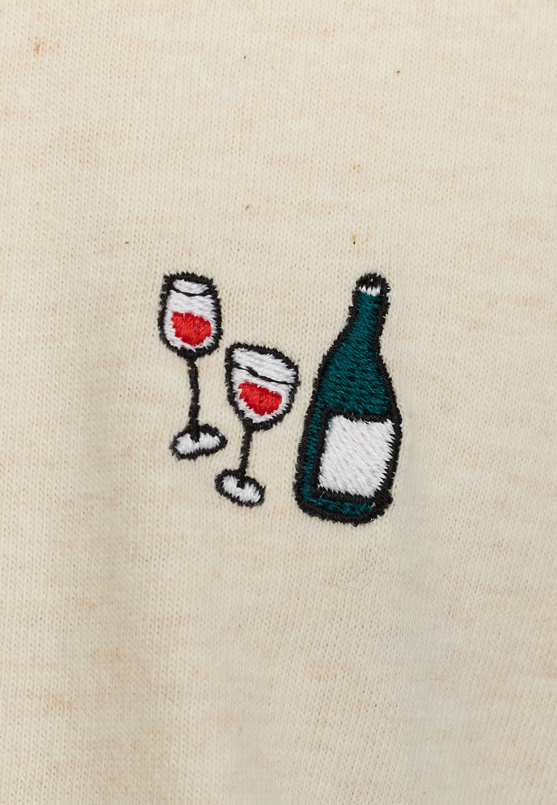 Loose-fitted t-shirt with a round neck and short sleeves, made in a mélange organic cotton-jersey, with a weight of 200 GSM. The t-shirt features a small fun, colorful embroidery on the chest, a rib collar and the hem is made with a twin needle stitch. The finishing of the t-shirt adds softness and ensures stability and durability to the style