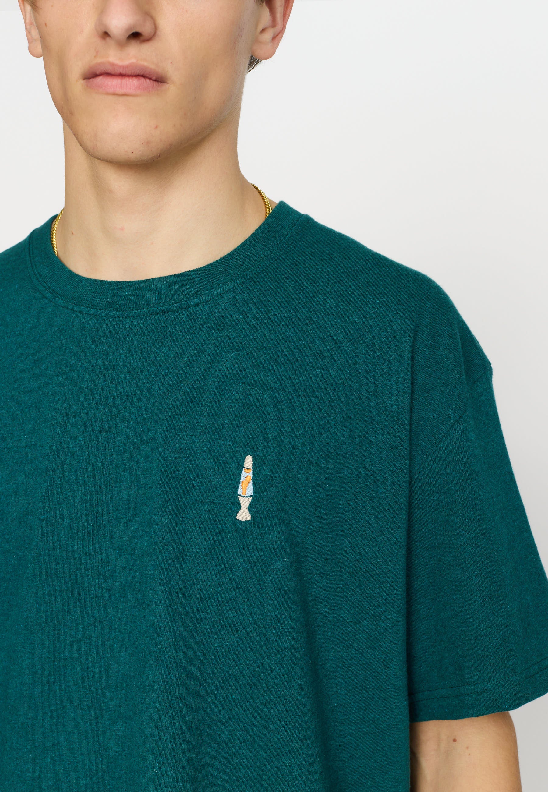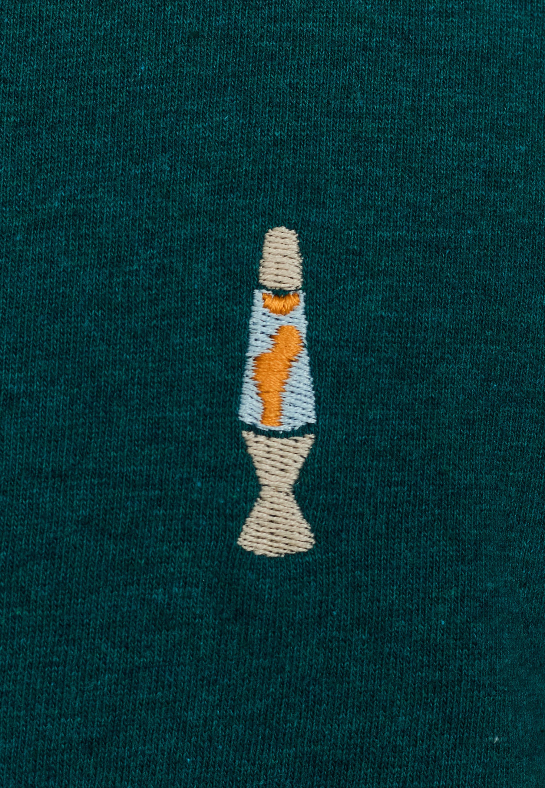 Loose-fitted t-shirt with a round neck and short sleeves, made in a mélange organic cotton-jersey, with a weight of 200 GSM. The t-shirt features a small fun, colorful embroidery on the chest, a rib collar and the hem is made with a twin needle stitch. The finishing of the t-shirt adds softness and ensures stability and durability to the style
