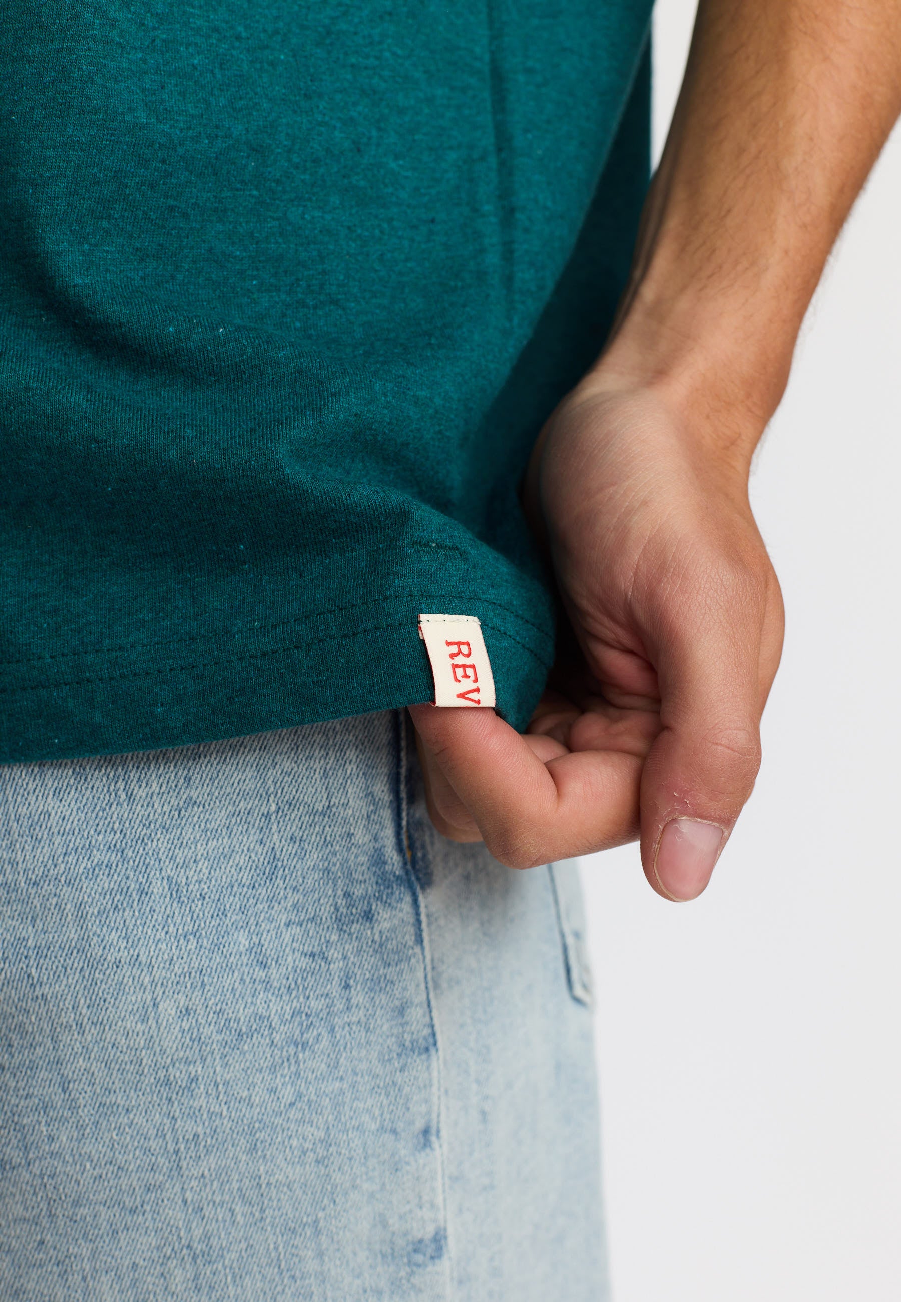 Loose-fitted t-shirt with a round neck and short sleeves, made of a mélange organic cotton-jersey, with a weight of 200 GSM. The t-shirt features a small fun, colorful embroidery on the chest, a rib collar and the hem is made with a twin needle stitch. The finishing of the t-shirt adds softness and ensures stability and durability to the style