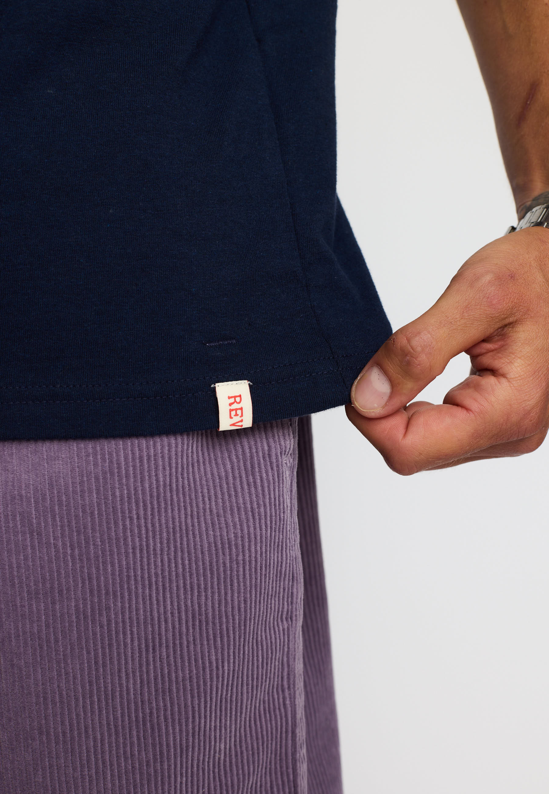 Loose-fitted t-shirt with a round neck and short sleeves, made of a mélange organic cotton-jersey, with a weight of 200 GSM. The t-shirt features a small fun, colorful embroidery on the chest, a rib collar and the hem is made with a twin needle stitch. The finishing of the t-shirt adds softness and ensures stability and durability to the style