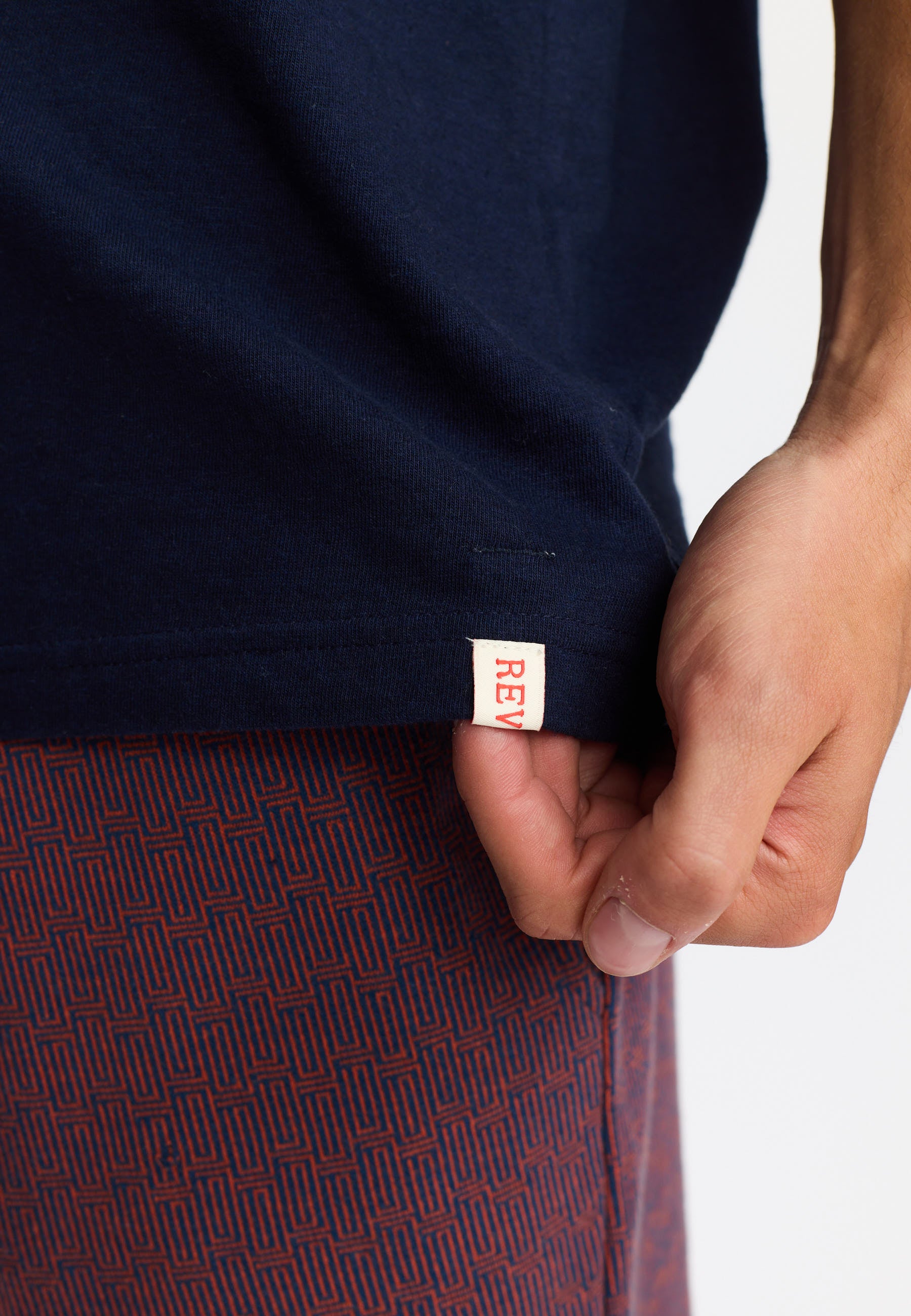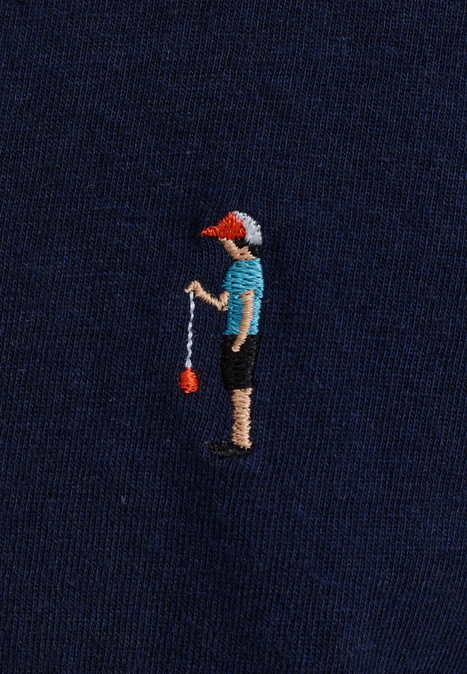 Loose-fitted t-shirt with a round neck and short sleeves, made of a mélange organic cotton-jersey, with a weight of 200 GSM. The t-shirt features a small fun, colorful embroidery on the chest, a rib collar and the hem is made with a twin needle stitch. The finishing of the t-shirt adds softness and ensures stability and durability to the style