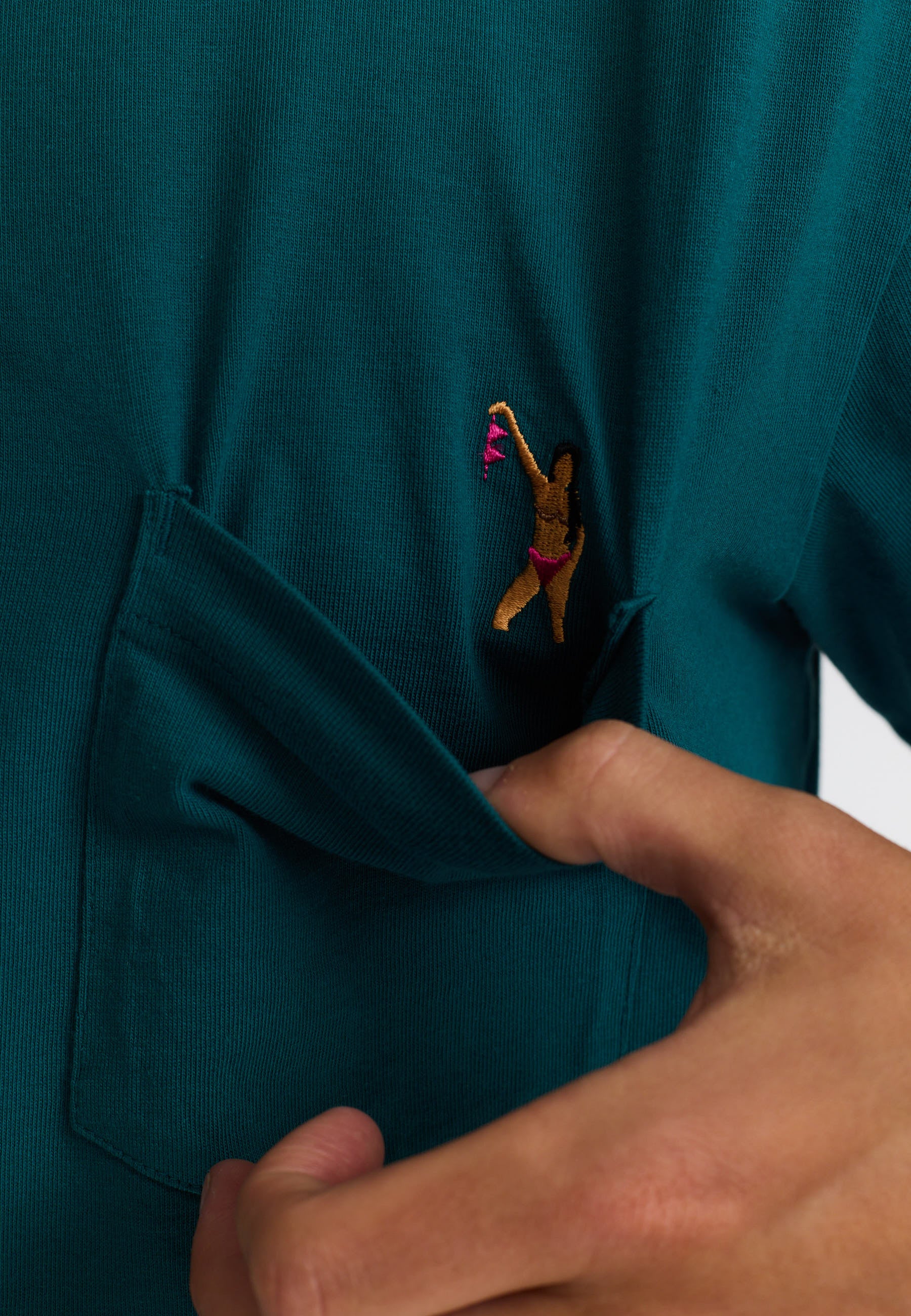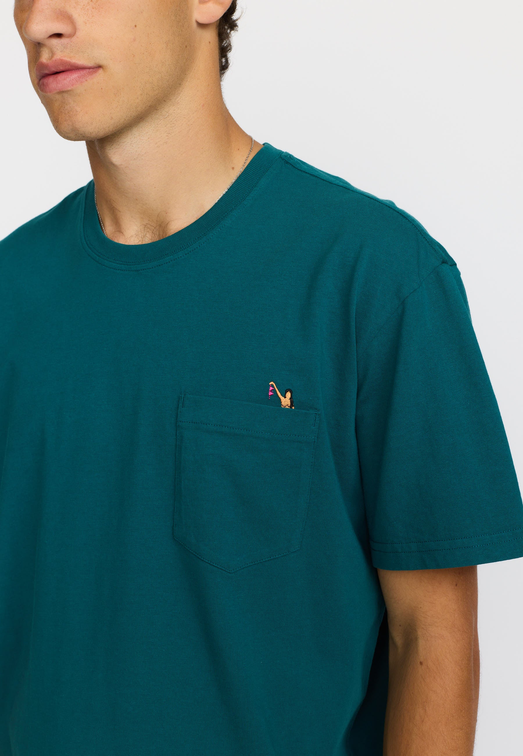 Loose-fitted pocket t-shirt with a round neck and short sleeves, made of an organic cotton jersey, with a weight of 200 GSM. A small fun and colorful embroidery by the chest-pocket adds a subtle character to the t-shirt. The finishing of the t-shirt adds softness and ensures stability and durability to the style