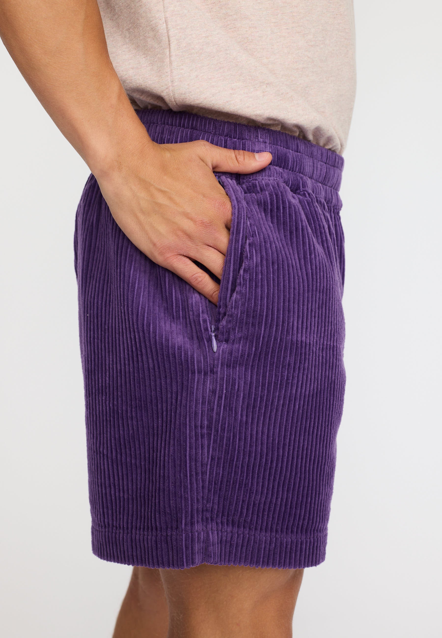The cool take on casual shorts – a perfect match for any everyday outfit. These pull-on shorts are crafted with a slightly loose fit in a heavy 4,5-wales cotton corduroy fabric, with a soft and velvety surface. The corduroy gives the shorts a nice structure and feels soft on the skin. They are designed with an elasticated waistline and visible adjustable drawstring, ensuring a perfect fit to different body types. The shorts feature slanted pockets with an extra hidden zip pocket and small slits at bottom leg opening adding character to the design