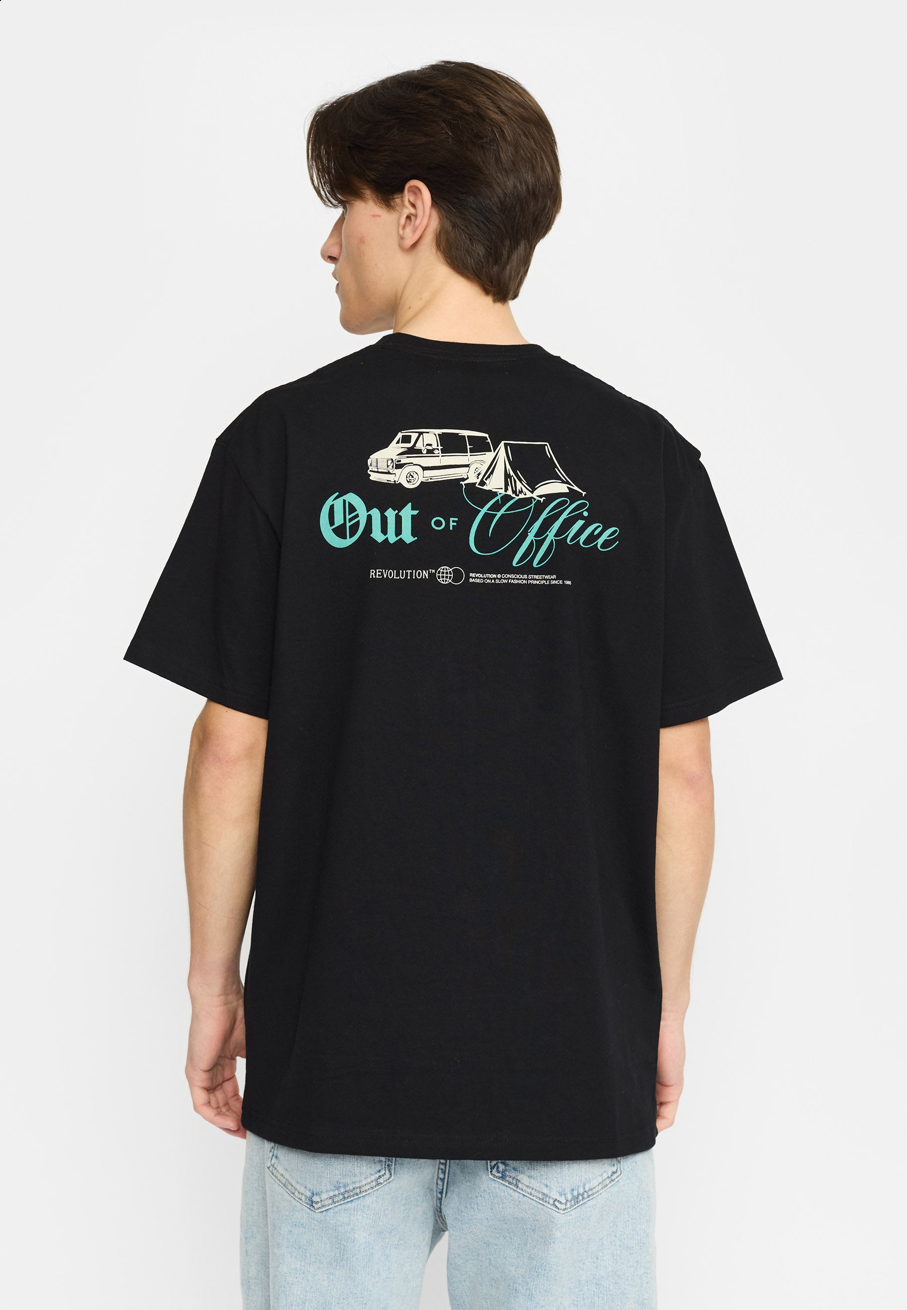 Loose-fitted t-shirt with a round neck and short sleeves, made in an organic cotton-jersey, with a weight of 220 GSM. The t-shirt features a large graphic print on the back and a small print on the chest. The heavy-weight jersey-fabric with a crispy hand-feel ensures stability and durability to the t-shirt.