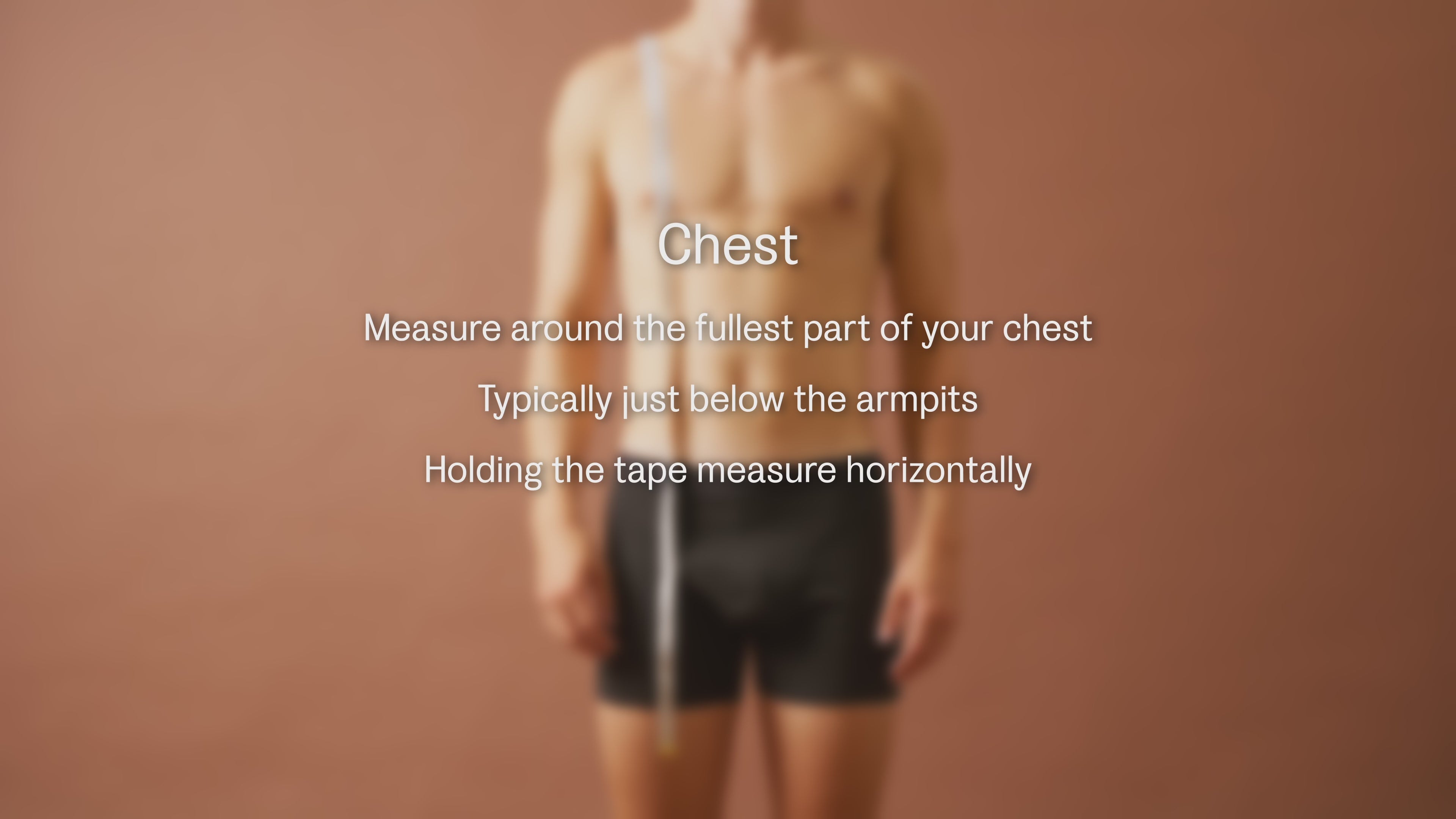 CHEST: Measure around the fullest part of your chest, typically just below the armpits, holding the tape measure horizontally.
